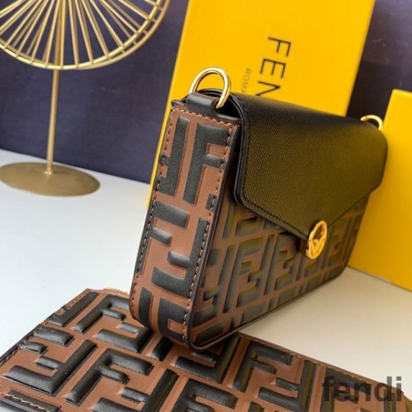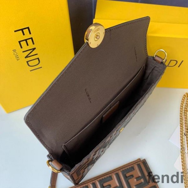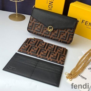 F is Fendi Chain Pouch In FF Motif Nappa Leather Brown/Black