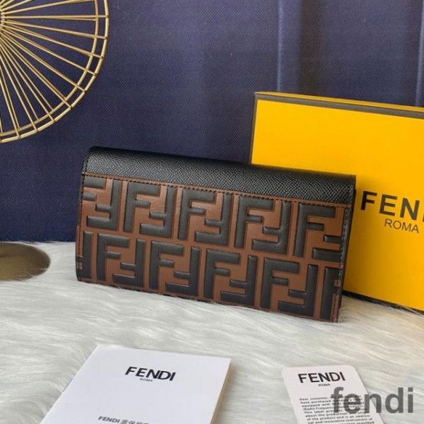 F is Fendi Continental Wallet In FF Motif Calf Leather Brown/Black