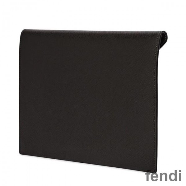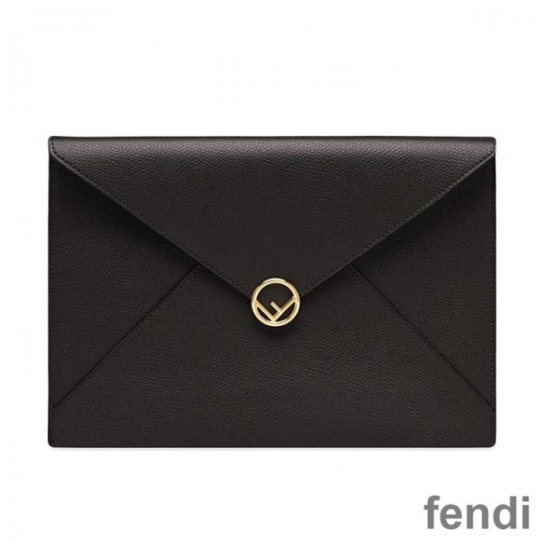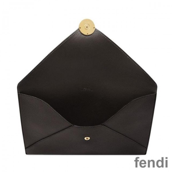 F is Fendi Large Slim Pouch In Cruise Leather Black