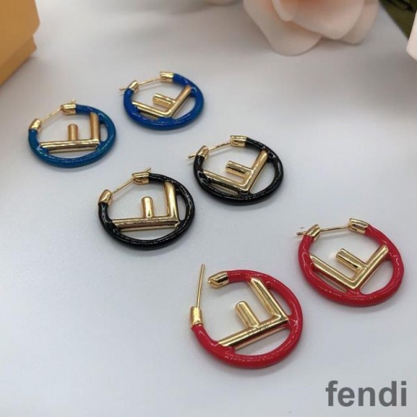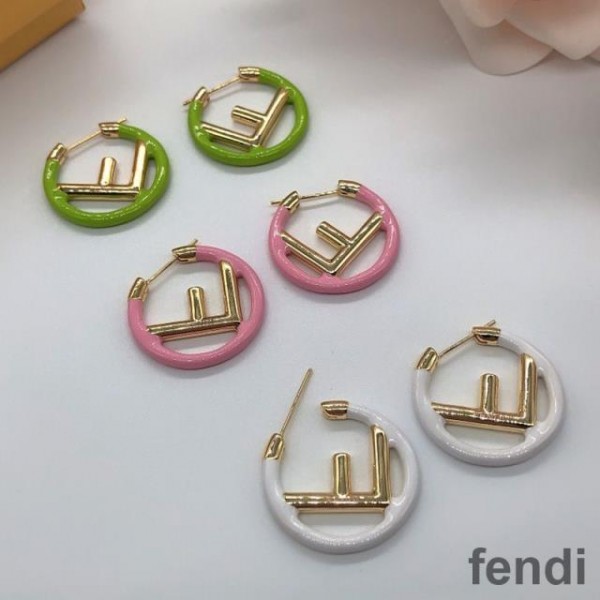 F is Fendi Small Hoop Earrings In Enameled Metal