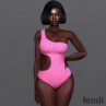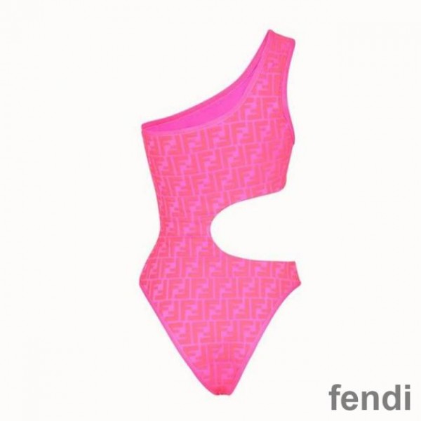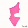 Fendi Asymmetric Cut-Out Swimsuit Women FF Motif Lycra Pink