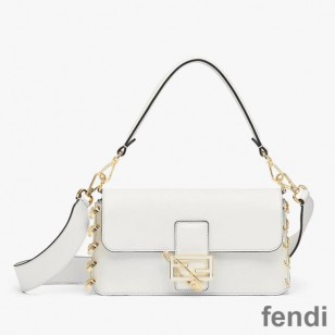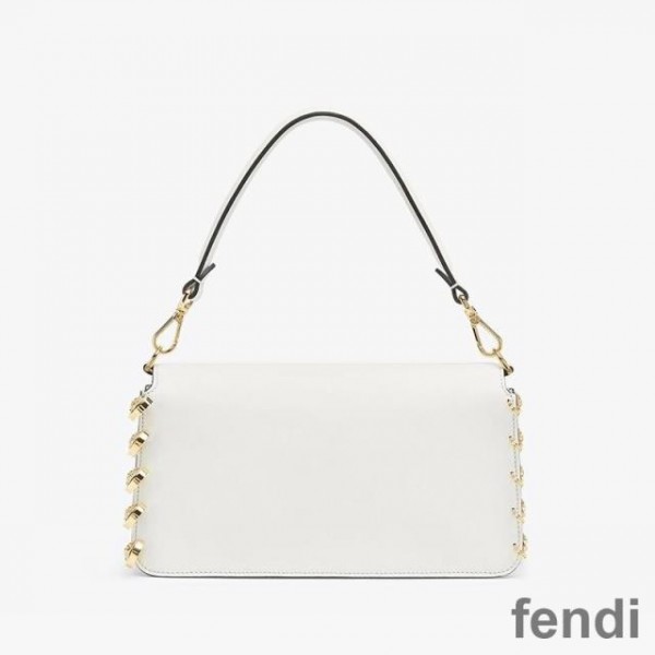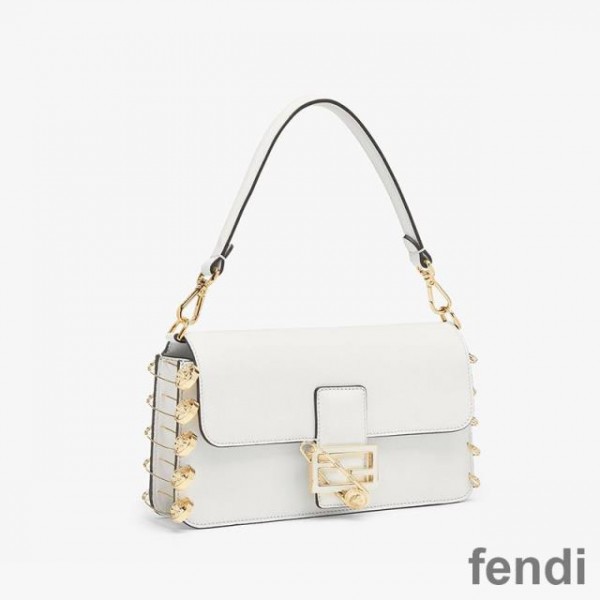 Fendi Baguette Bag In Calf Leather with Fendace Pin Brooches White