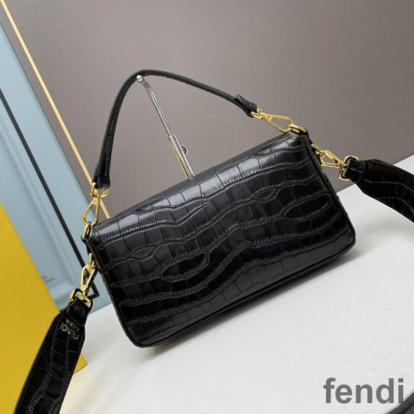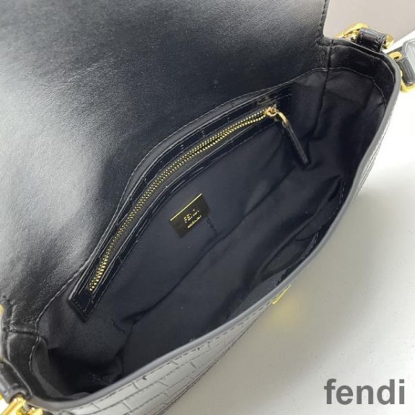 Fendi Mini Baguette Bag In FF Motif Fabric Brown