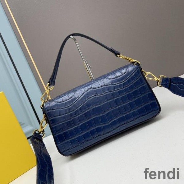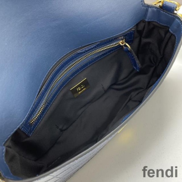 Fendi Baguette Bag In Crocodile Leather Blue