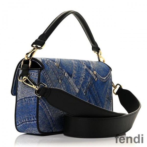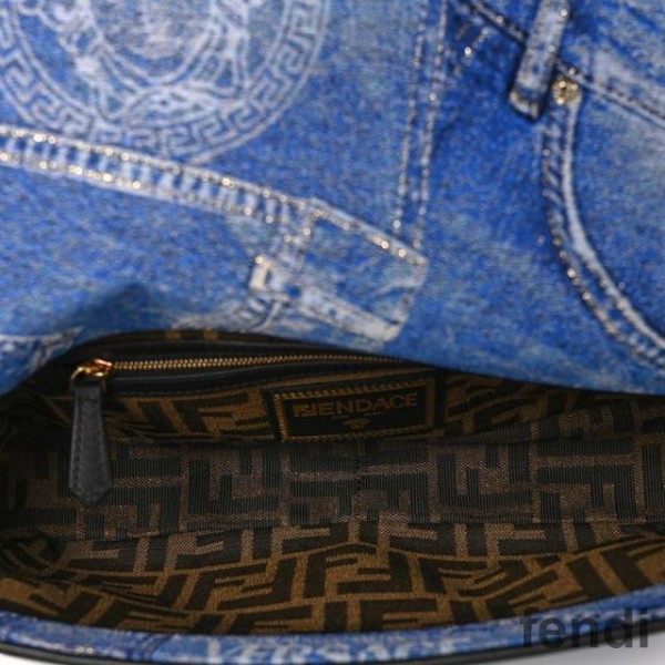 Fendi Baguette Bag In Fendace Patchwork Denim Blue