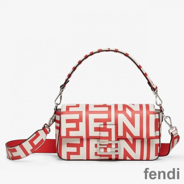 Fendi Baguette Bag In Fendi Roma Capsule Leather Red/White