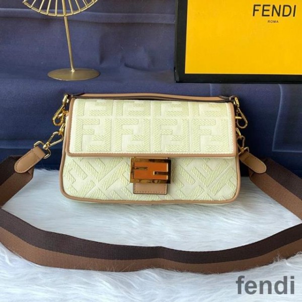 Fendi Baguette Bag In FF Motif Canvas Apricot