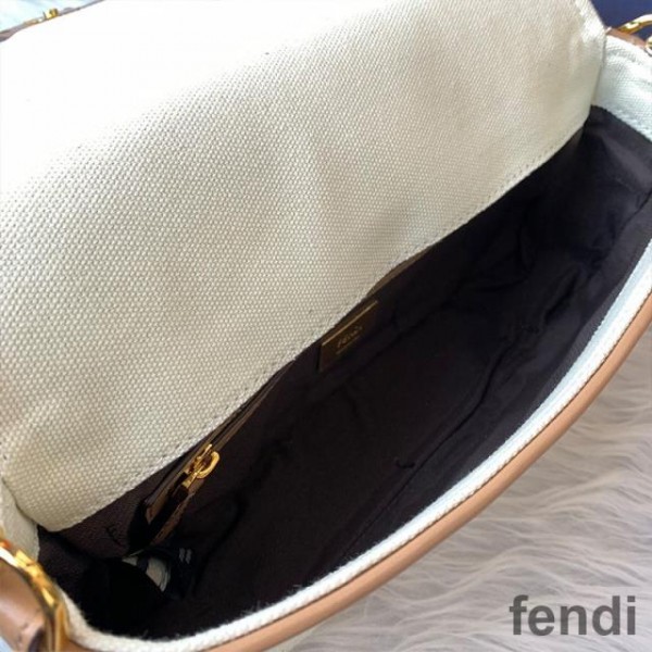 Fendi Large Baguette Bag In FF Motif Fabric Brown