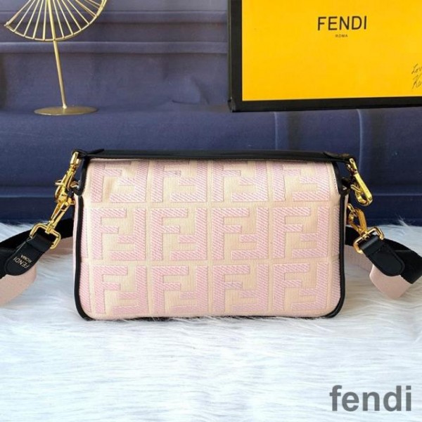 Fendi Baguette Bag In FF Motif Canvas Pink