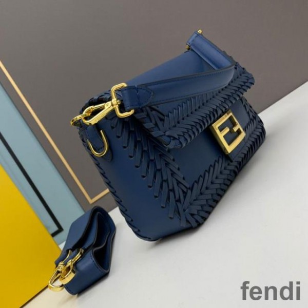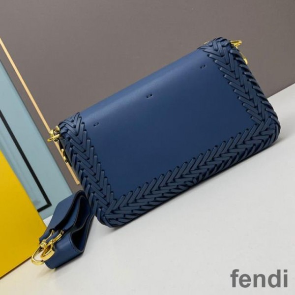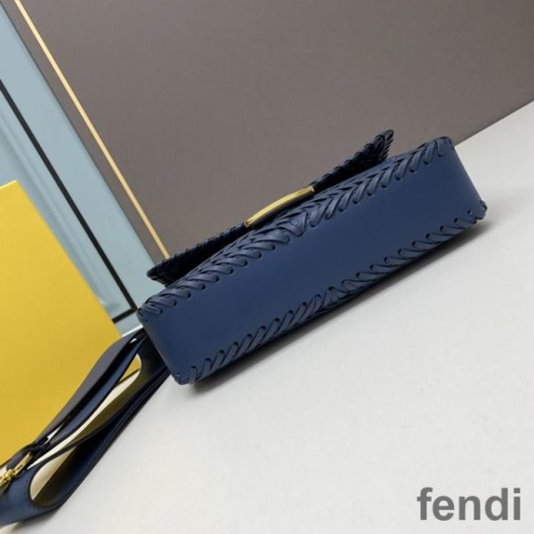 Fendi Baguette Bag In Stitching Leather Blue