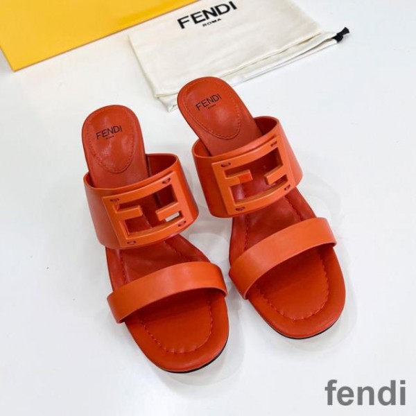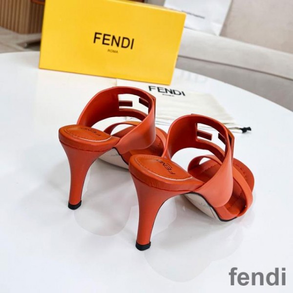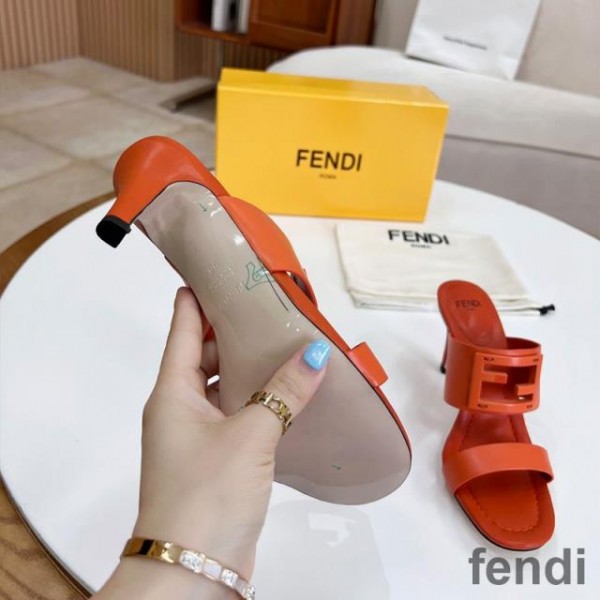 Fendi Baguette Heeled Slides Women Leather Yellow