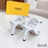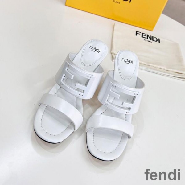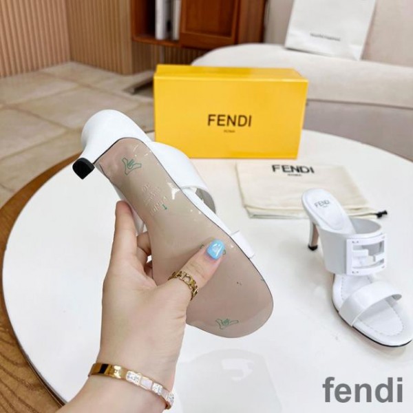 -White Fendi Baguette Heeled Slides.