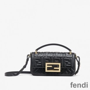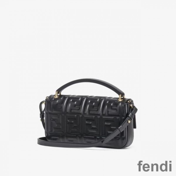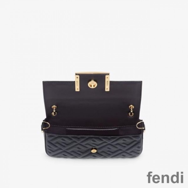 Fendi Baguette Phone Pouch In FF Motif Nappa Leather Black