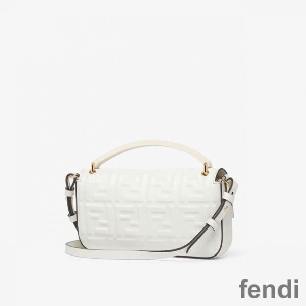 Fendi Baguette Phone Pouch In FF Motif Nappa Leather White