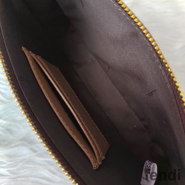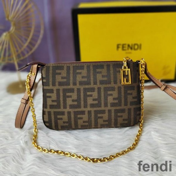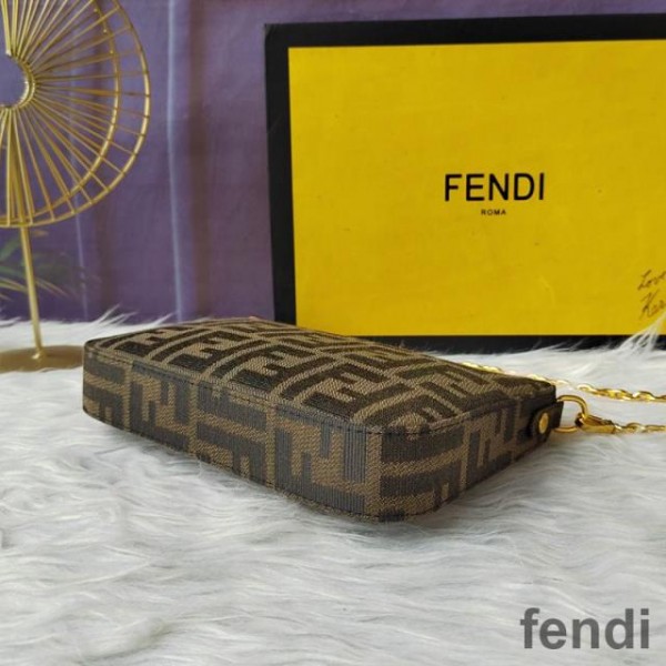 Fendi Baguette Pouch with Chain In FF Motif Fabric Brown