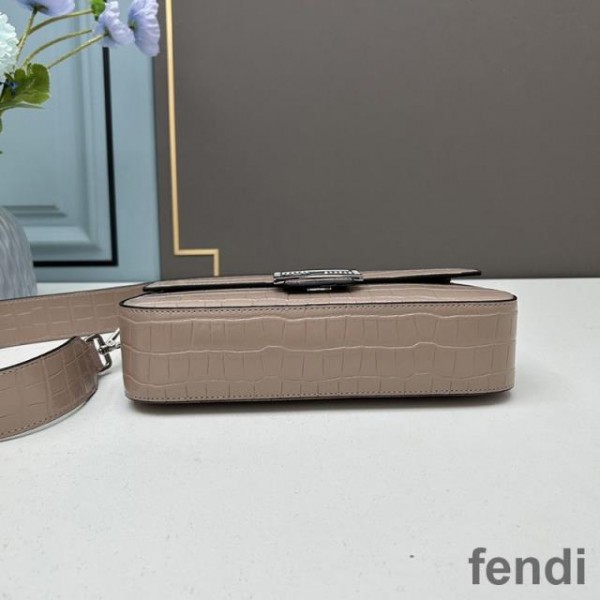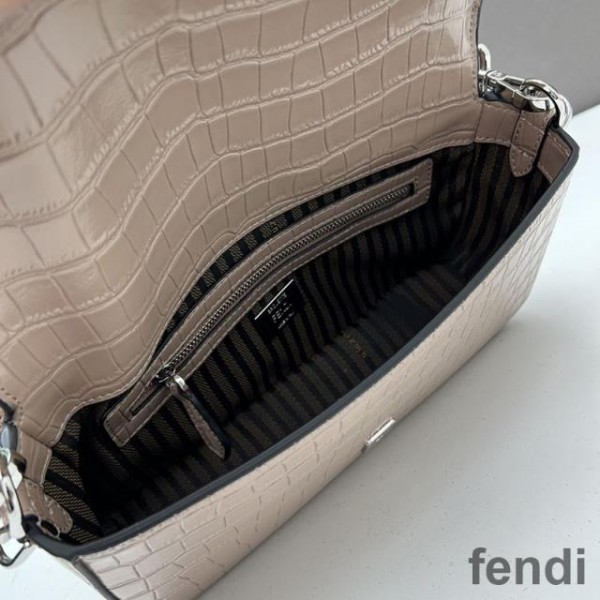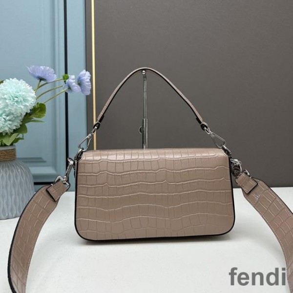 Fendi Baguette Re-Edition Bag In Crocodile Leather Apricot