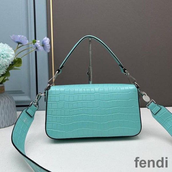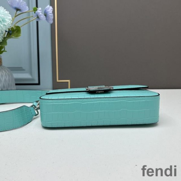 Fendi Baguette Re-Edition Bag In Crocodile Leather Sky Blue