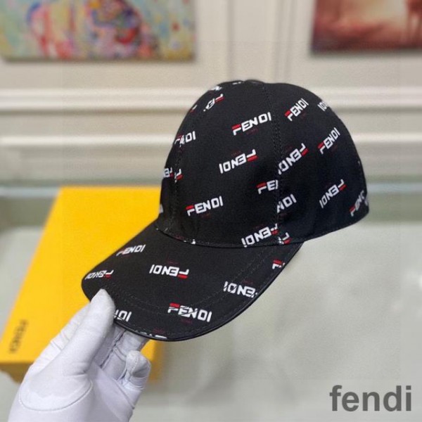 Fendi Baseball Cap In Fendi Roma Motif Canvas Black