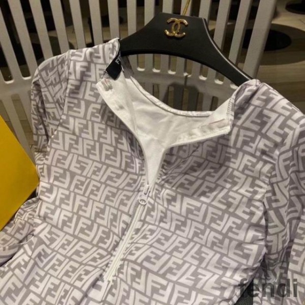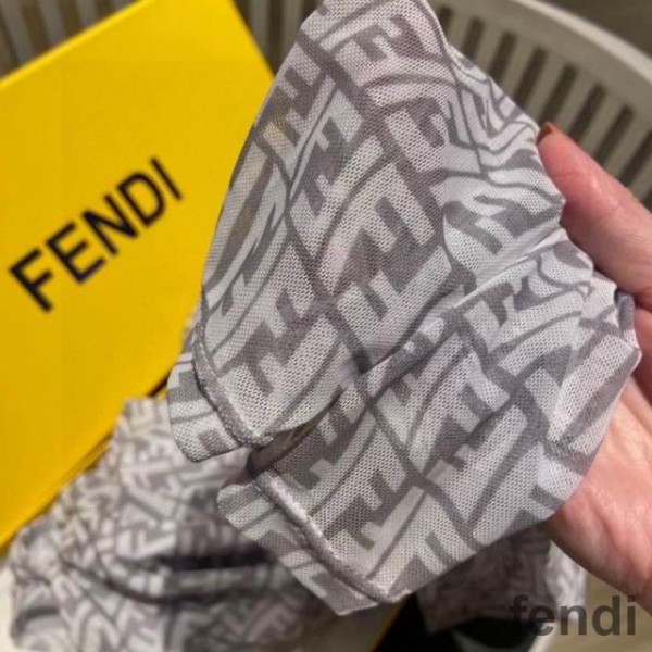 Fendi Bodysuit with Zip Women FF Fish-Eye Motif Tulle Grey/White