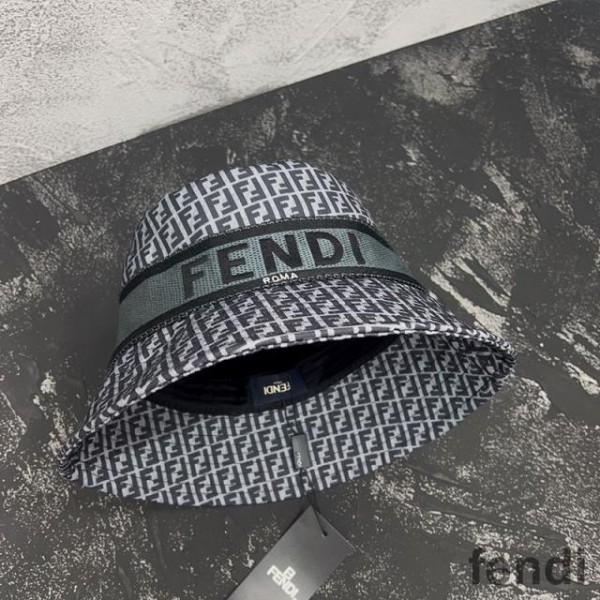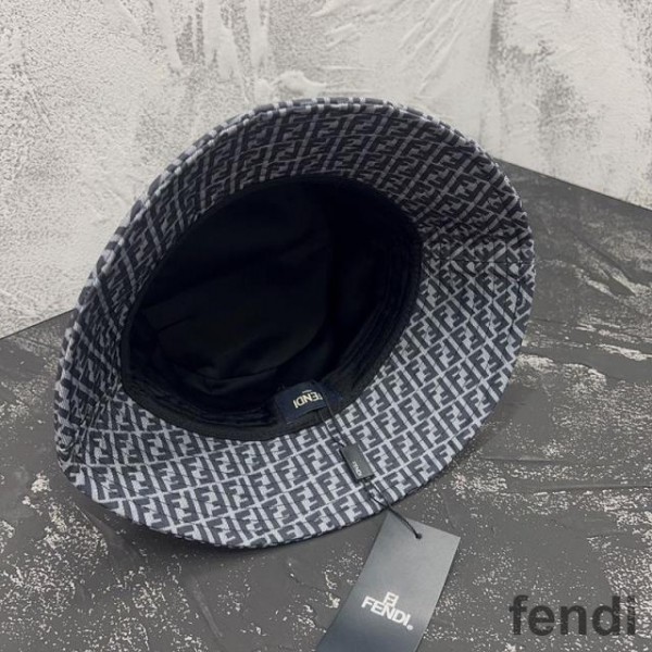 Fendi Bucket Hat In Fendi Roma and FF Motif Cotton Black