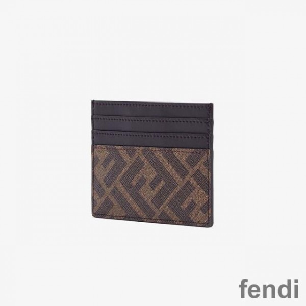 Fendi Card Holder In FF Motif Fabric Brown/Red