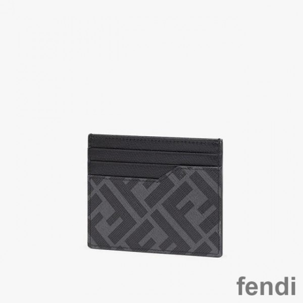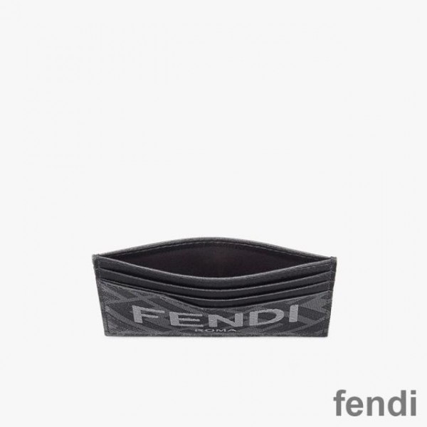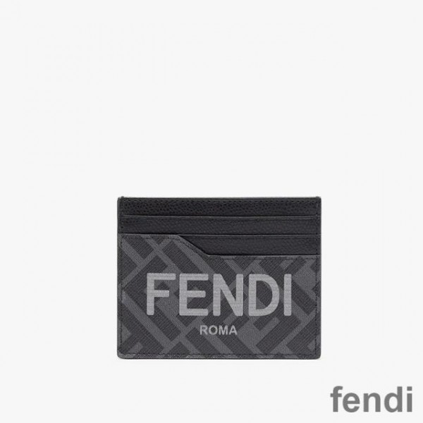 Fendi Card Holder In ROMA Logo FF Motif Fabric Black