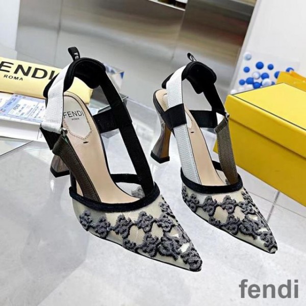 Fendi Colibri Slingback Pumps Women Karligraphy Motif Mesh White