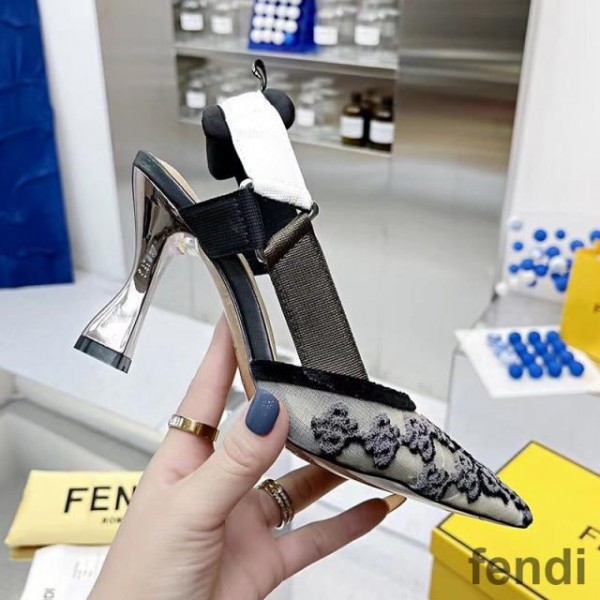 Fendi Colibri Slingback Pumps Women Karligraphy Motif Mesh Brown