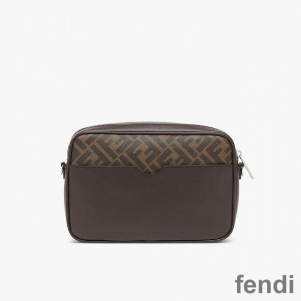 Fendi Compact Camera Case In ROMA Logo FF Motif Fabric Brown