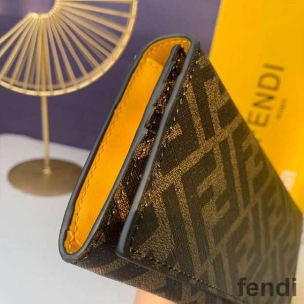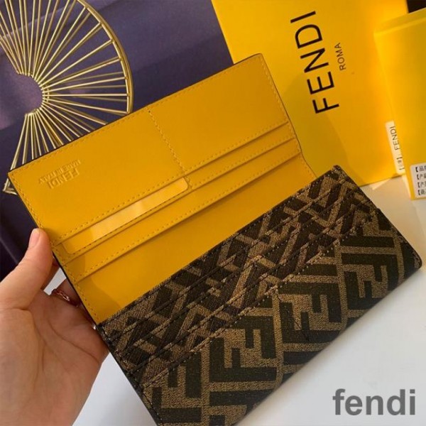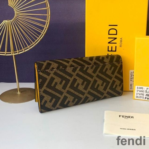 Fendi Continental Wallet In FF Motif Fabric Brown