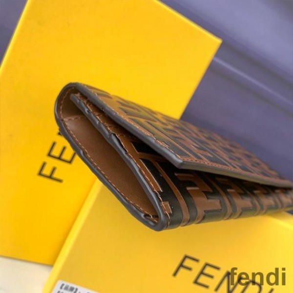Fendi Continental Wallet In FF Motif Nappa Leather Brown