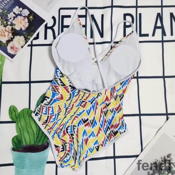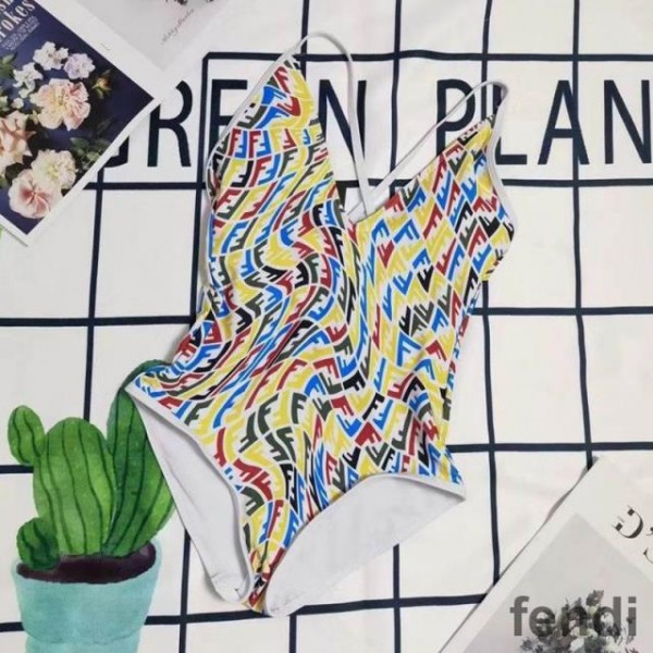 Fendi Crisscross Swimsuit Women FF Vertigo Motif Lycra Multicolor