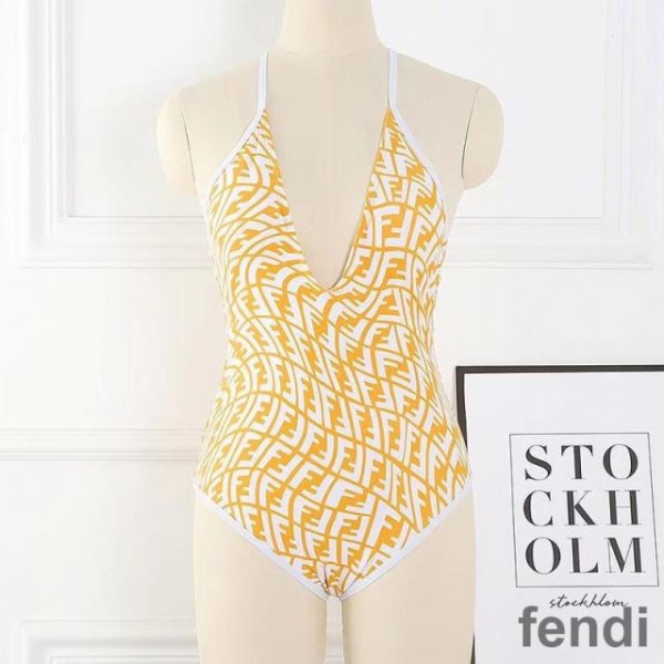 -Yellow Fendi Crisscross Swimsuit.