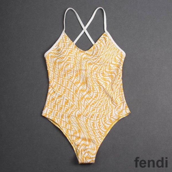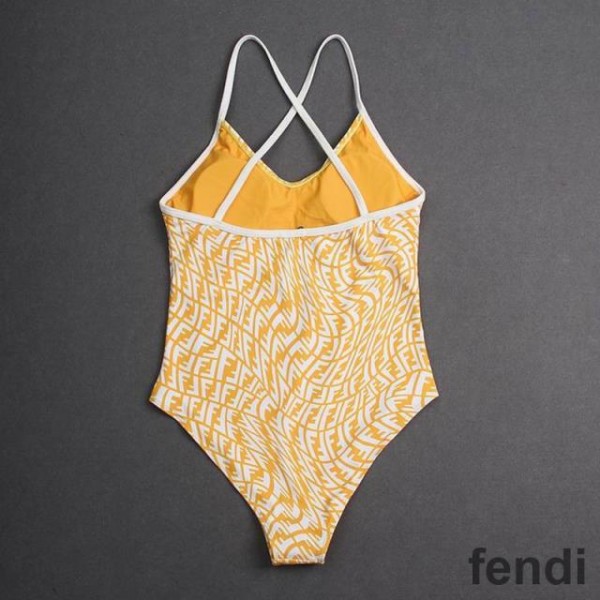 Fendi Crisscross Swimsuit Women FF Vertigo Motif Lycra Yellow