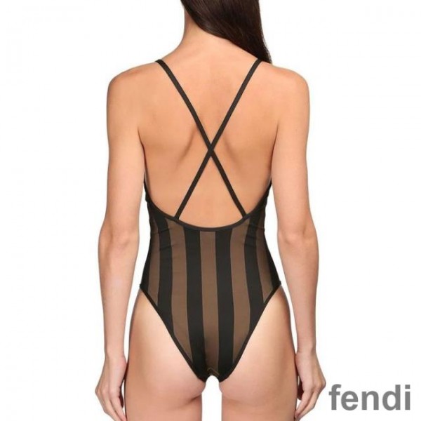 -Brown Fendi Crisscross Swimsuit.