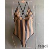Fendi Crisscross Swimsuit Women Vichy Pequin Motif Lycra Brown