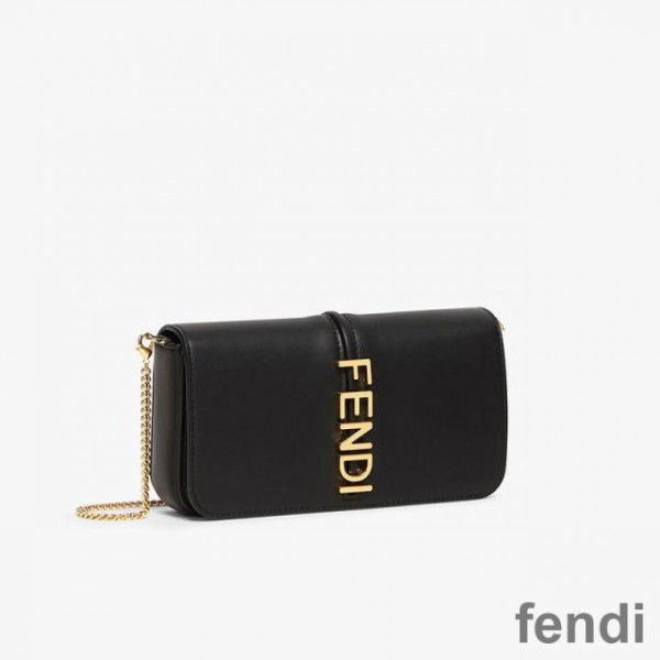 Fendi Fendigraphy Wallet with Chain In Calf Leather Black
