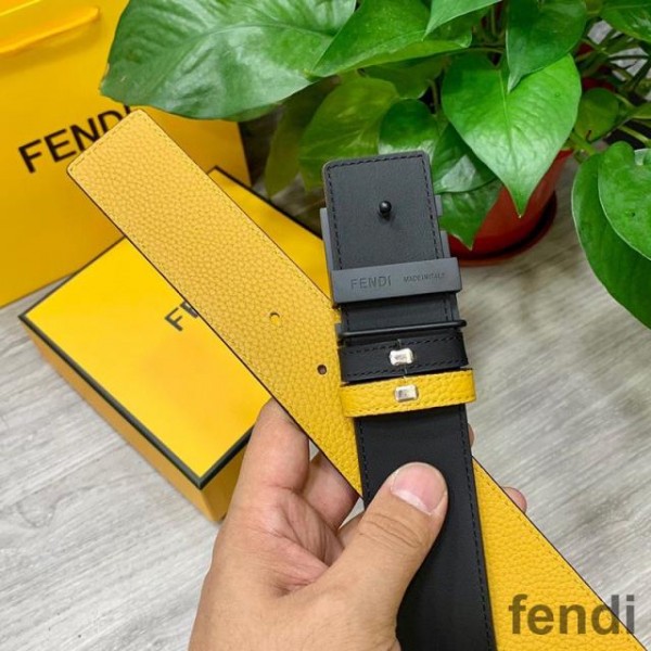 Fendi FF Buckle Reversible Belt In Calfskin Yellow/Black