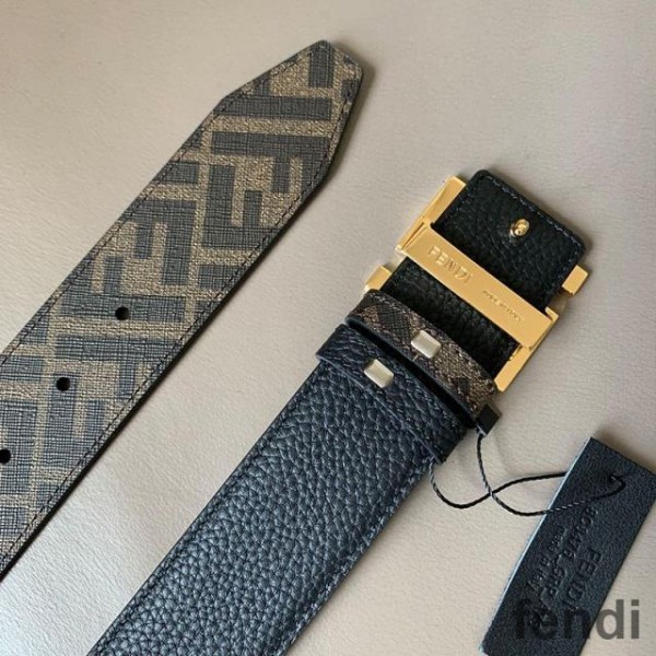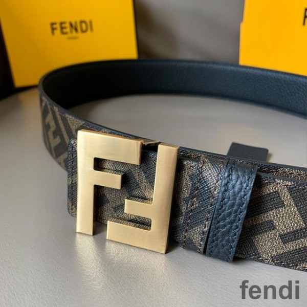 Fendi FF Buckle Reversible Belt In FF Motif Fabric and Calfskin Brown/Gold