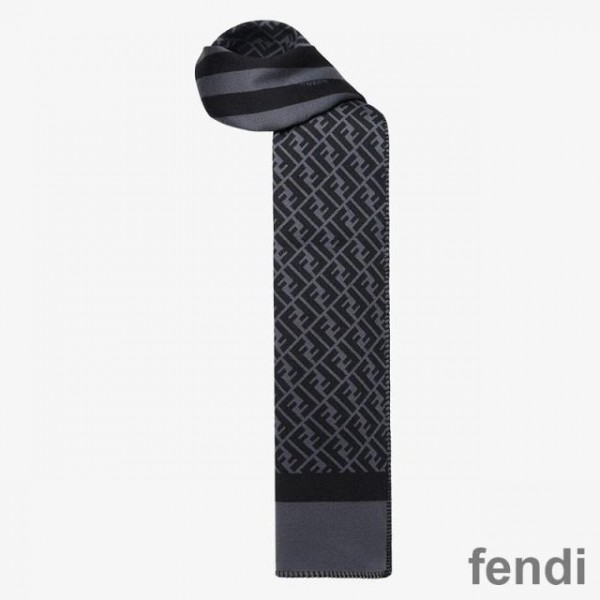 -Black Fendi FF Rectangular Scarf.