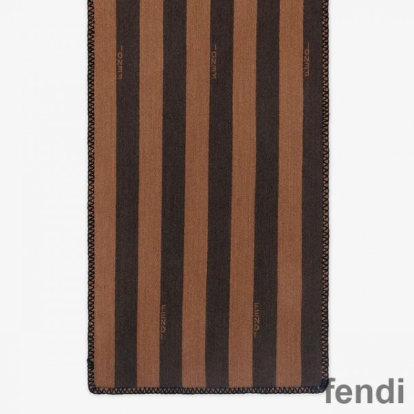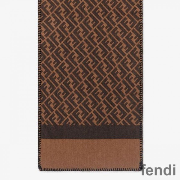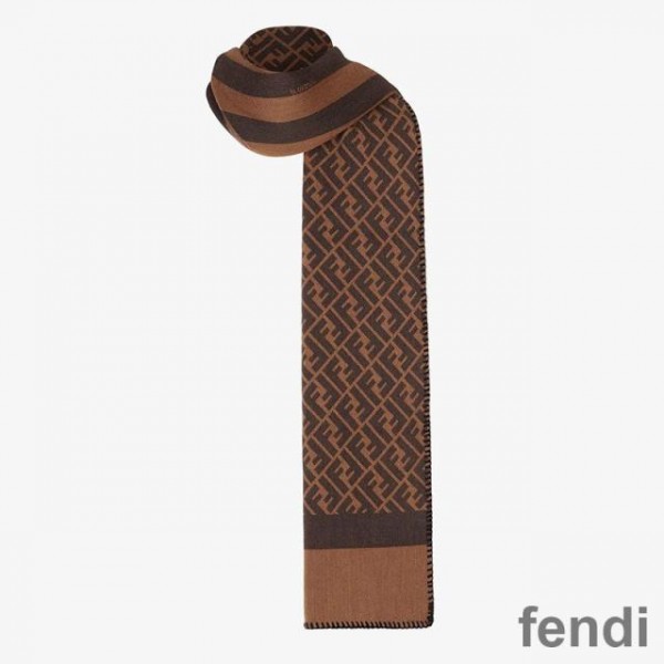 Fendi FF Rectangular Scarf Man In Silk and Wool Brown