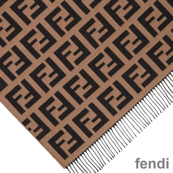 Fendi Roma Logo Scarf In Wool and Cashmere Beige