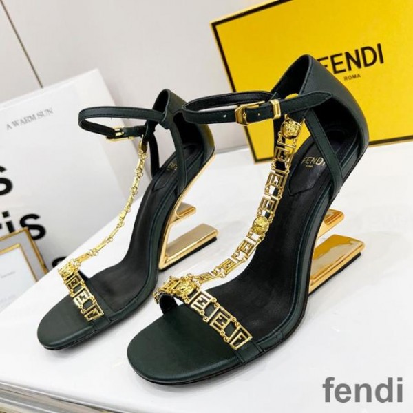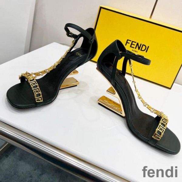 Fendi First Sandals Women Leather with Fendace Chain Black