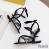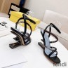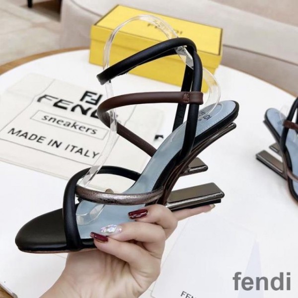 -Diagonal F-shaped sculpted heel in gold-colored metal.