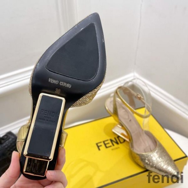 -Gold Fendi First Slingback Pumps.