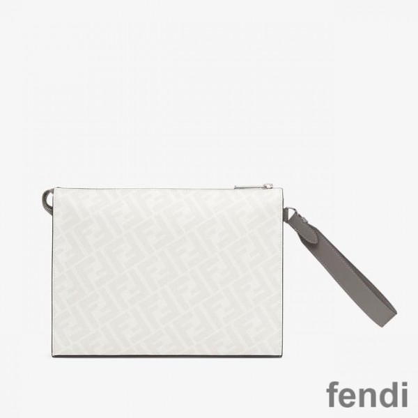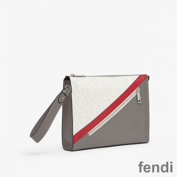 Fendi Flat Pouch In FF Motif Fabric White/Red