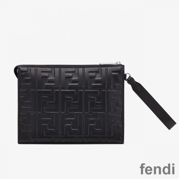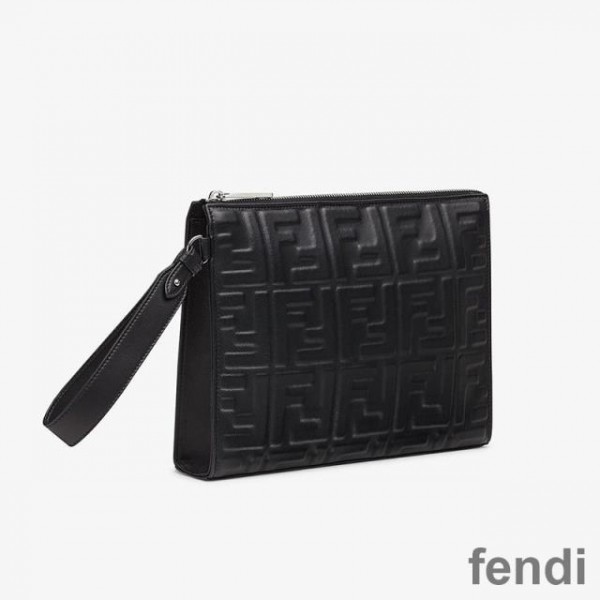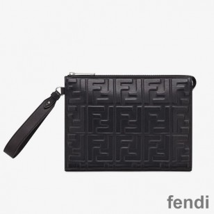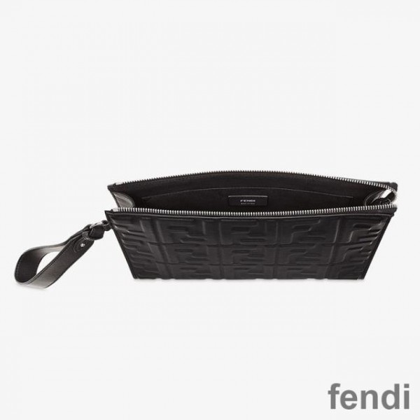 Fendi Flat Pouch In FF Motif Nappa Leather Black