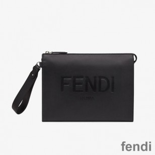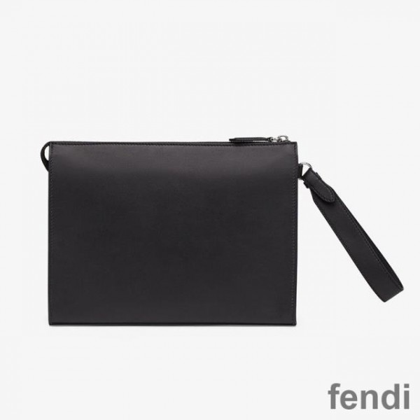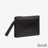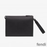 Fendi Flat Pouch In Fendace Logo Calf Leather Black