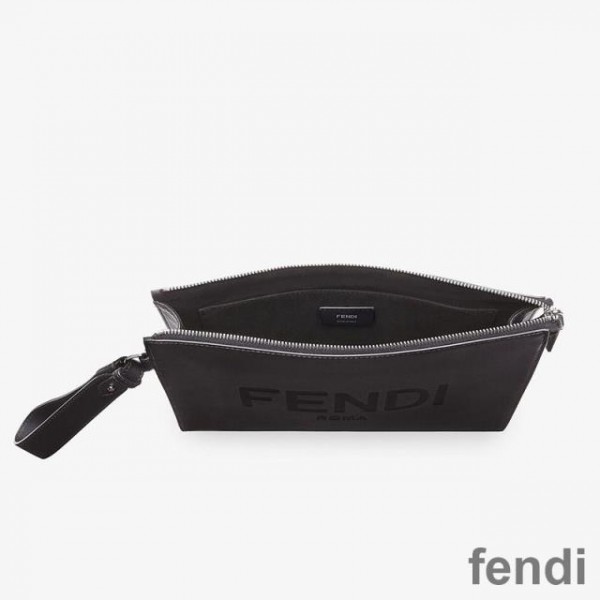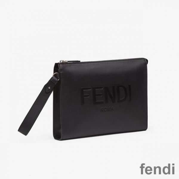 Fendi Flat Pouch In Roma Logo Calf Leather Black