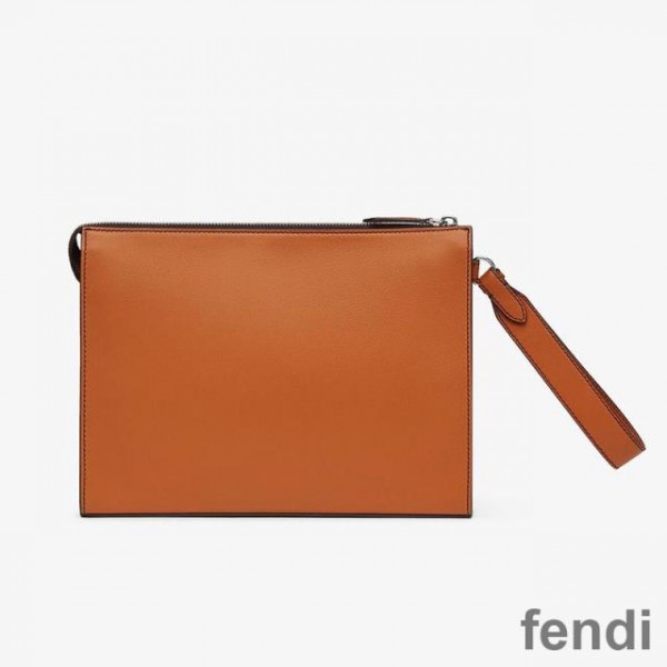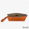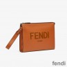 Fendi Flat Pouch In Roma Logo Calf Leather Brown